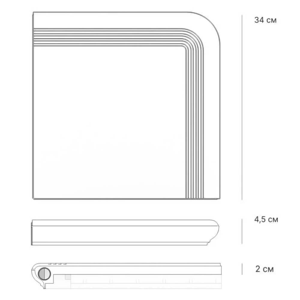 Ступень угловая Verona из искусственного камня для ступеней крыльца, размеры 340х340х20мм цвет Терракотовый.